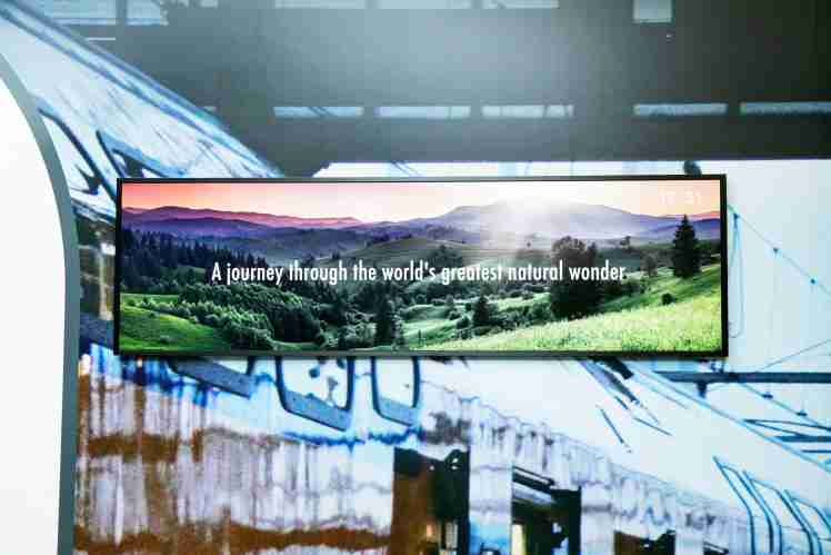 德铁导入达擎 TARTAN 28.6寸面板,,着眼 TARTAN 与众不同的尺寸比例,,,能为车厢带来更大的使用效益、、更出色的观赏体验与更多的设计弹性。。(图片来源:德国铁路公司)