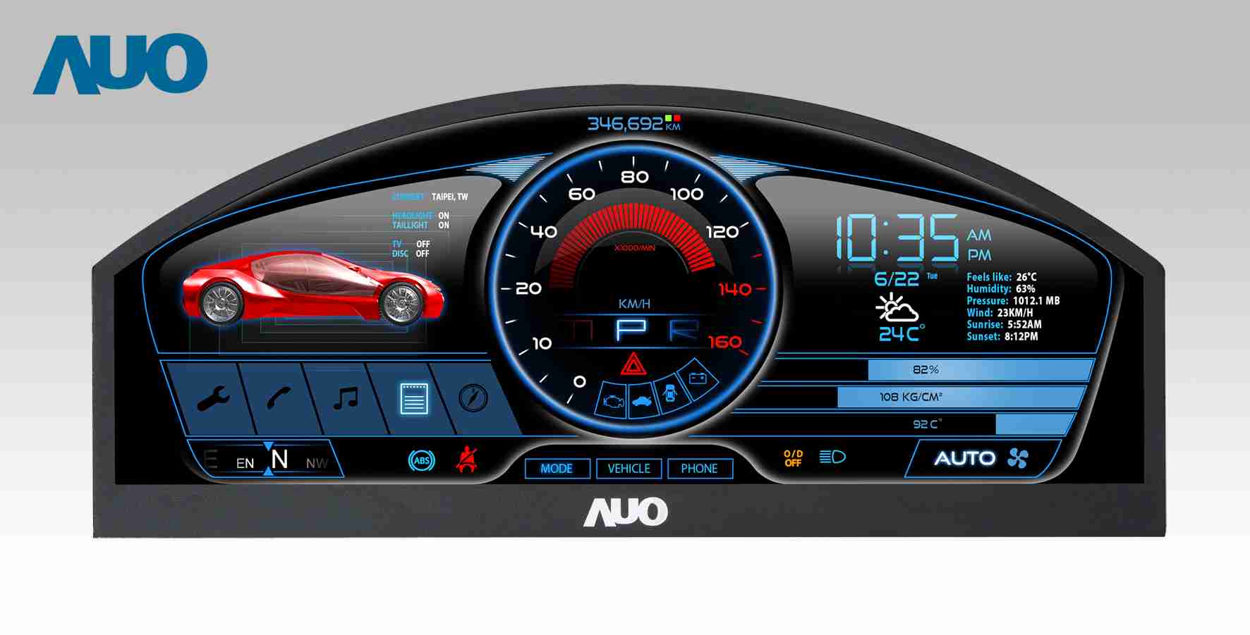 JDB电子 12.3吋超高解析异型切割车用面板,,,拥有流线外观及精细画质