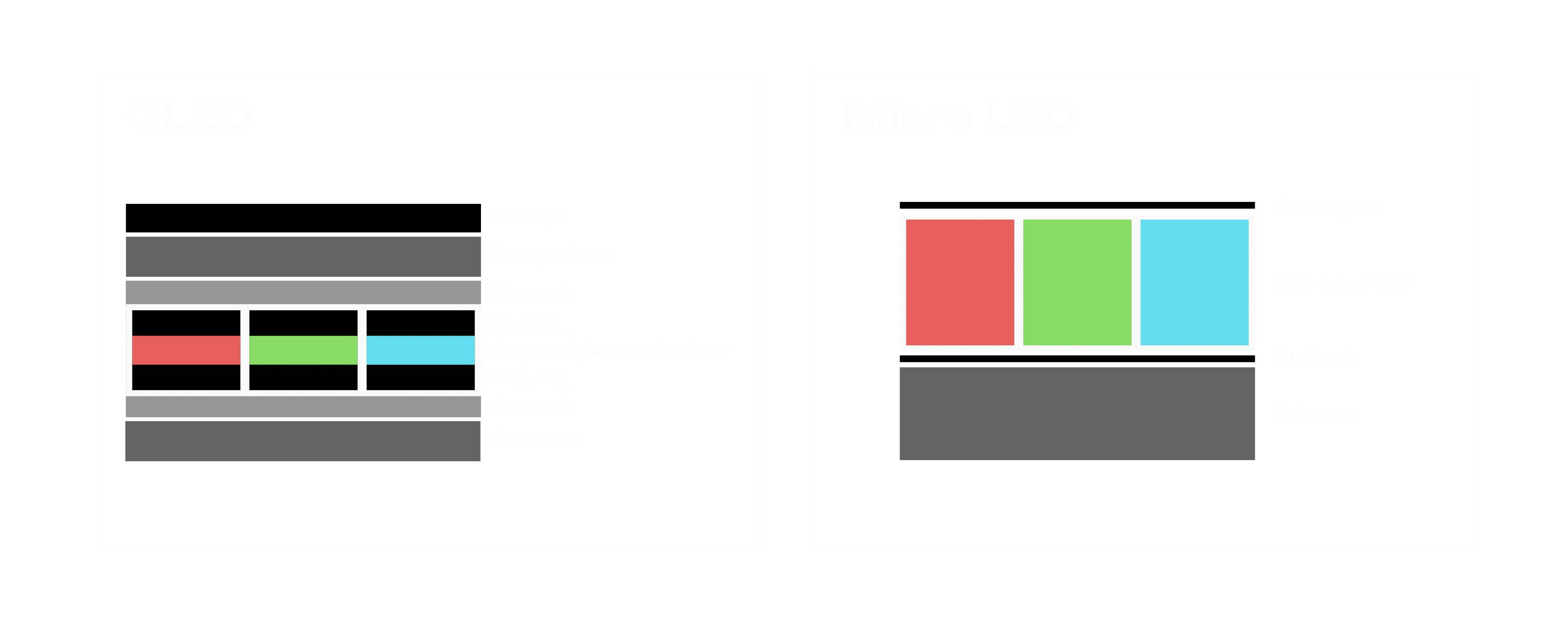 以 LED 做为显示画素,,,,可让 LED 的发光效率发挥到极致,,,从而让显示器具备优异的亮度表现,,,不论是在户外或室内,,,,均具备出众的显示效果。。。。同时,,,与使用有机材料的 OLED 相比,,,,LED 具备更稳定、、寿命更长的特性,,,,不仅不会有画面烙印问题,,,而且更不容易出现故障、、、坏点。。